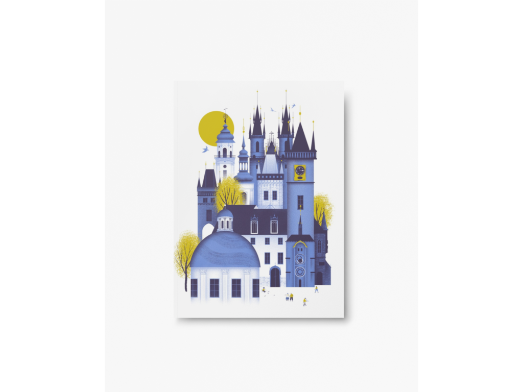 Praha stověžatá je přezdívka, která se našeho hlavního města drží dodnes. Ilustrace zachycuje Týnský chrám, Staroměstskou radnici s orlojem, kostel sv. Mikuláše i stromy na náměstí, kolem kterých chodíme tak rychle, že je skoro přehlédneme. Motiv vznikl pro ty, kdo Prahu znají nazpaměť, i pro ty, kdo ji teprve objevují.